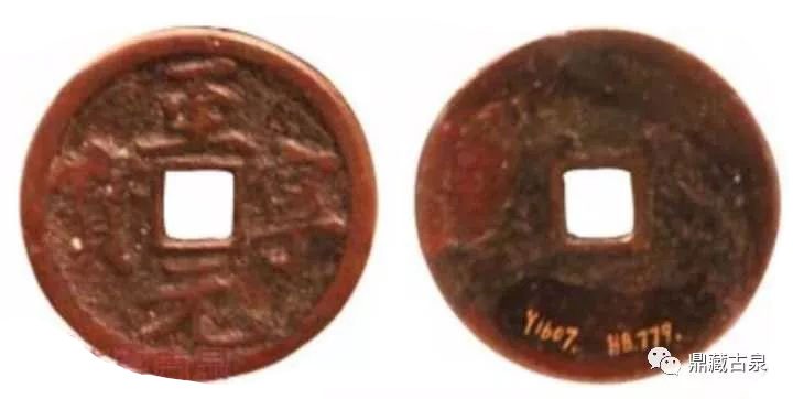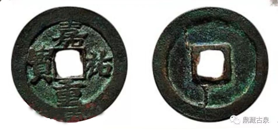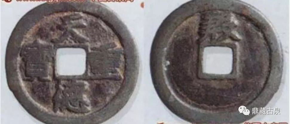 21. 皇祐元宝:北宋仁宗皇祐年间铸,之前未见记载,为近年发现之北宋珍品,目前仅见三枚。2012年保利春拍一枚皇祐元宝小平成交价格为43.7万元。