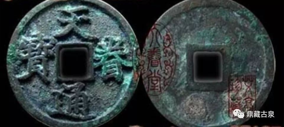 17. 大齐通宝:“大齐通宝”,是南唐开国皇帝李弁铸造的第一种南唐钱币。吴天祚三年( 937 ),徐知诰(李弁)即帝位于金陵(今江苏南京),国号大齐,年号昪元( 937—942 )。昪元三年改国号为唐,即南唐。其国号大齐时铸大齐通宝,。过去曾有唐黄巢铸说,后被否定。早期仅发现两枚。一枚的右上方缺一角,钱币界称之为“缺角大齐”,另一枚的钱上钻有4个小孔,被称为“四眼大齐”。“缺角大齐”由清朝的江南名士戴熙所藏,当时就有人愿用高价收买,戴不忍割爱,太平军攻进杭州,戴投水自尽,死前将大齐通宝等物深埋地下。后人为了得到这杖稀世真品,争相购买戴宅,掘地数次,终无所获。“四眼大齐”是上世纪20年代泉学家戴保庭和朱克壮在江西鄱阳农村孩童踢的毽子上发现的,此枚大齐通宝虽然不缺角,但因为做毽子,被钻出四个小孔。后被著名收藏张叔驯重金购得,藏之密室,从不示人,且因而自号“齐斋”,其对“大齐通宝”的珍爱可见一斑。大齐通宝唯其罕见,弥足珍贵。近年又陆续发现两枚,极其珍罕,国内暂无上拍记录。