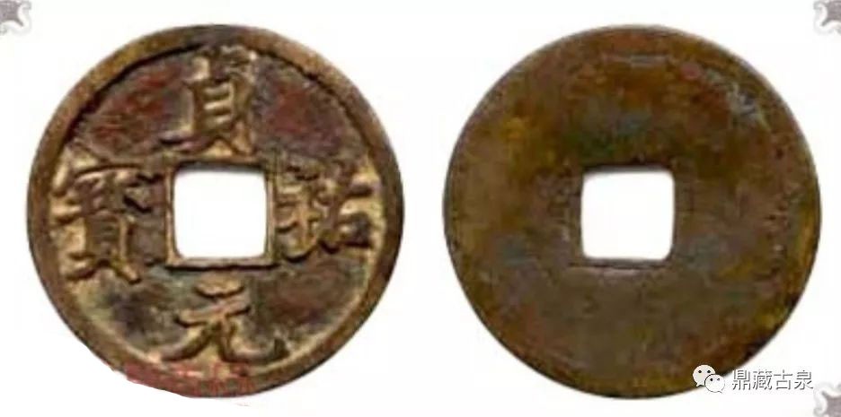 42. 贞观宝钱:西夏崇宗李乾顺,贞观年间(公元1101~1113年)铸造,形制为小平钱,直径2.5CM。钱形较大。贞观宝钱是目前已知西夏年号钱中存世最少的一种,颇不易见。2010年嘉德春拍出品一枚,惜品相稍弱,成交价格为11万元。