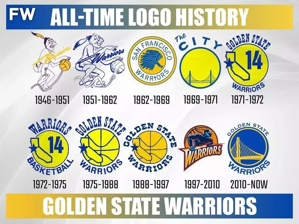 勇士队自1962年从费城迁至旧金山以来,其队标经历了多次变更后逐渐固定。主要元素是跨海大桥及勇士图案。现用版本则采用更时尚的设计。