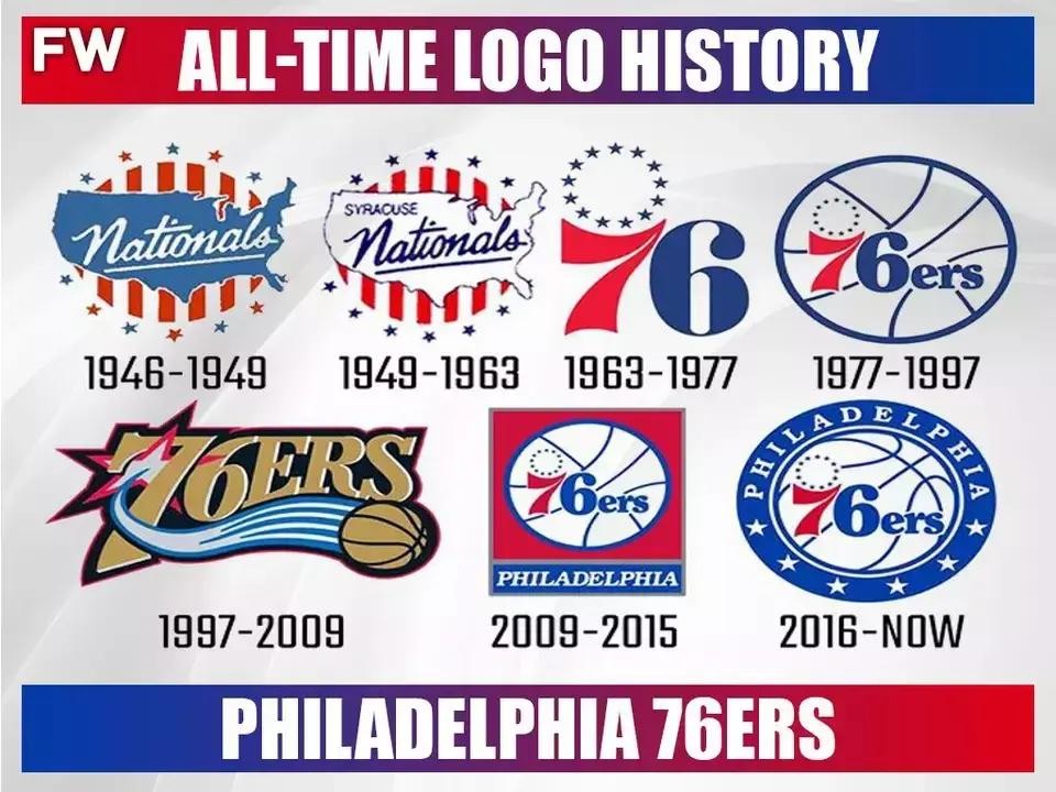 76人队自1963年从旧金山迁移至费城以来,队标就保持了较高的稳定性。主要元素是以费城建市之年命名的球队名字“76人”。现用版本则增强了文字的立体感。