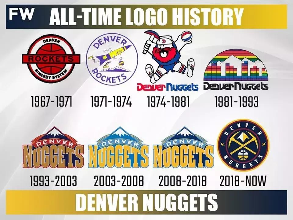 掘金队自1976年ABA并入NBA以来,其队标就十分固定。主要元素是代表科罗拉多州的掘金工人图案。现用版本则采用更流畅的线条设计。