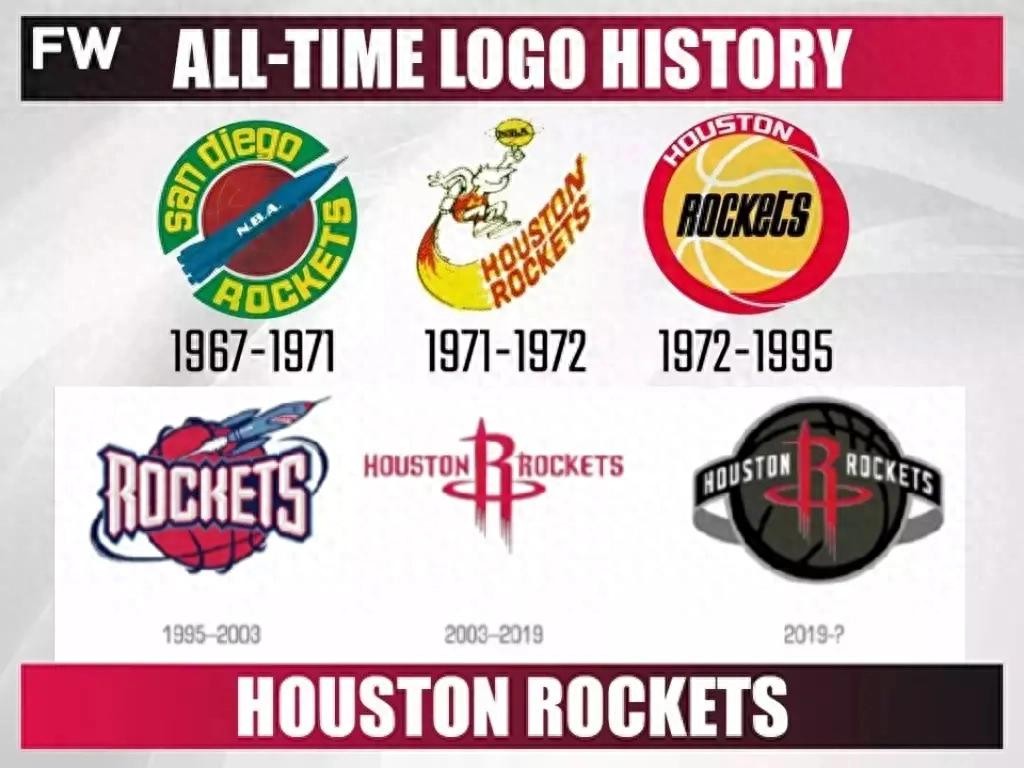 火箭队的前身可以追溯到1967年的圣迭戈火箭队,后者在1971年搬迁到了休斯敦并更名为火箭队。该队logo历史上变动不大,主要元素一直是火箭等空间元素。现用版本采用更加简洁明快的线条设计。