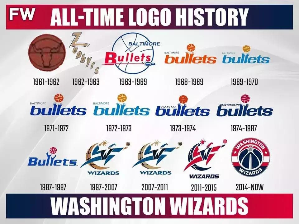 奇才队的前身是1961年的芝加哥包装工队,该队徽标一共变更过14次之多,创下了NBA记录。现版本采用更加立体化的文字与球员造型。