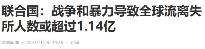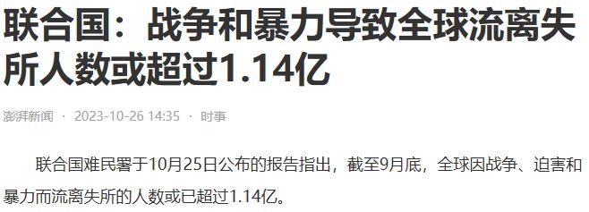 据 2023 年联合国难民署所发布的《年终趋势报告》,至 9 月底,因战争、迫害等因素而流离失所的全球人数,恐怕已超 1.14 亿。