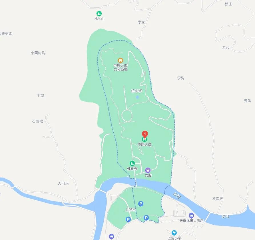 说起这尊大佛,先唠一个传说,唐李世民夜作一梦,“梦见佛祖站在山上,向众生普洒甘露,面前是一汪碧波清泉。”翌日,他就命人寻找梦境之地,寻到了鲁山,一看与梦中十分相似,背山(玉枕山)面水(沙水、温泉),山如卧龙,水治百病。在他看来,尧山的这里就是龙脉之处,青龙于左,白虎在右,财富环绕(水生财),上空祥云常年缭绕,是上好的风水宝地,就在山前最佳处建一寺院,取名为佛泉寺。