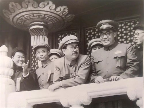 1950年1O月1日,在天安门城楼参加建国一周年庆典。
