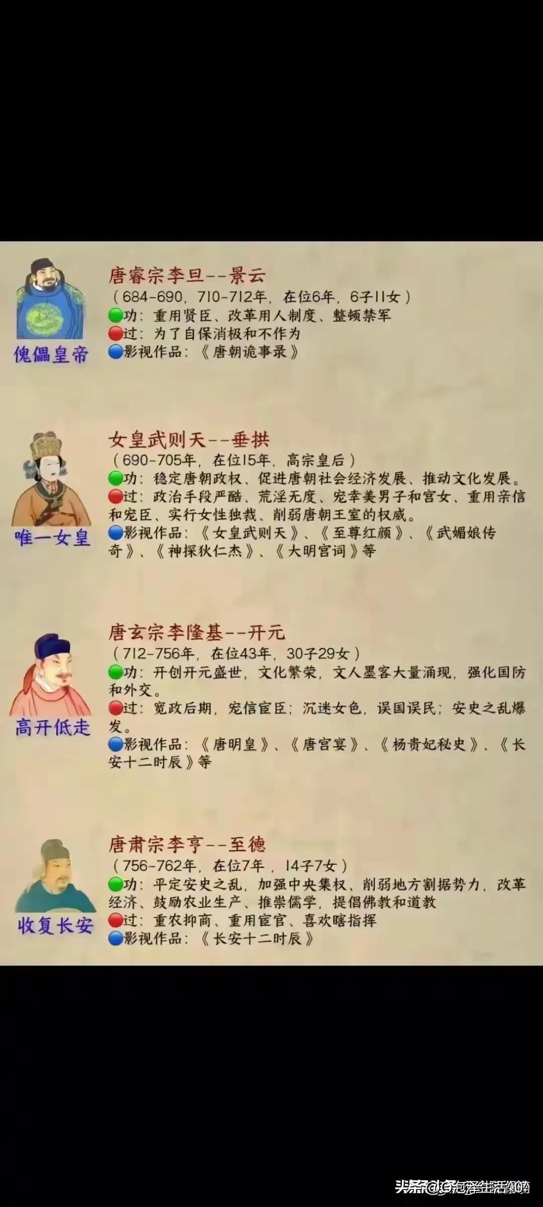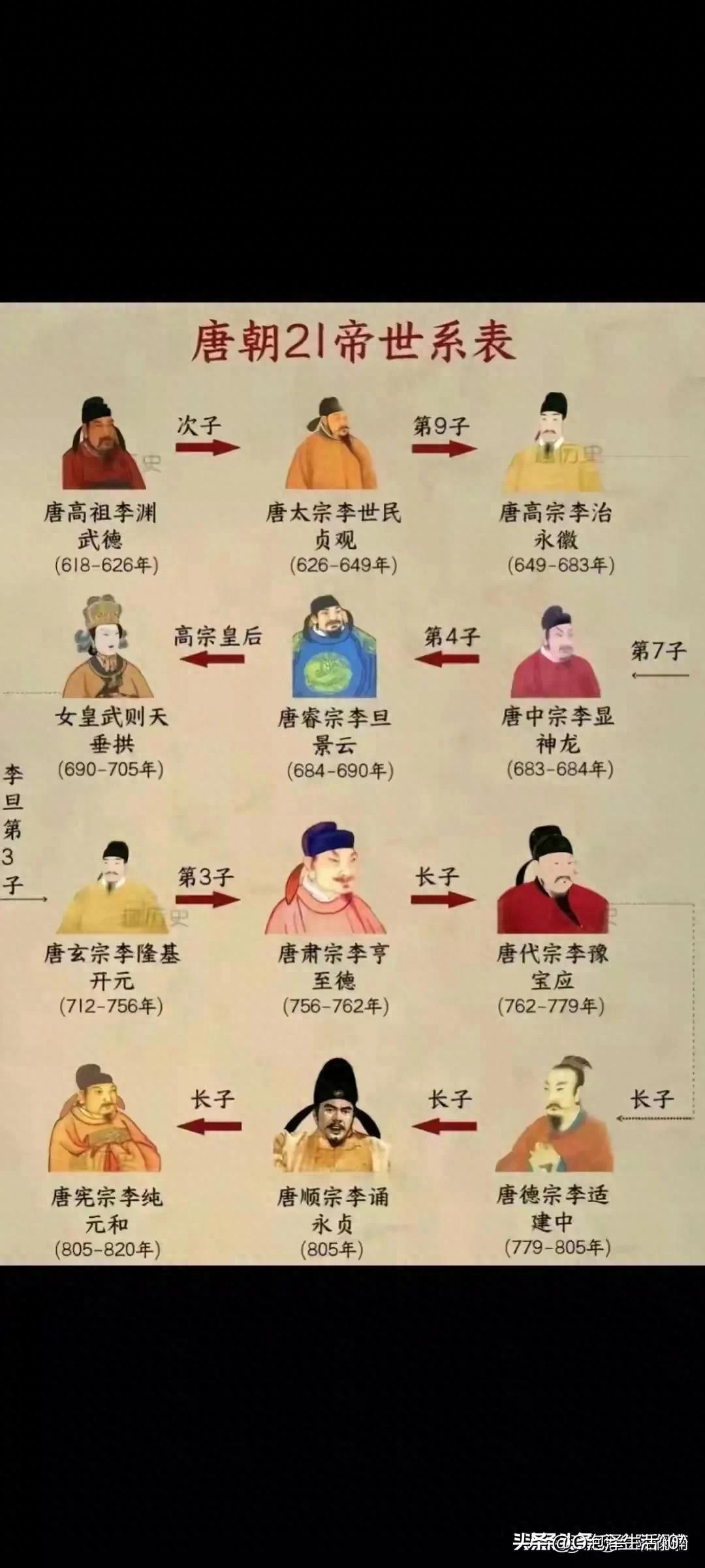 唐朝历史历代帝王顺序表,收藏了解