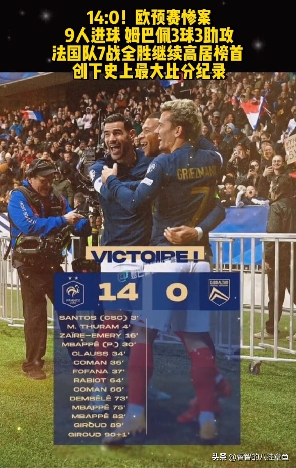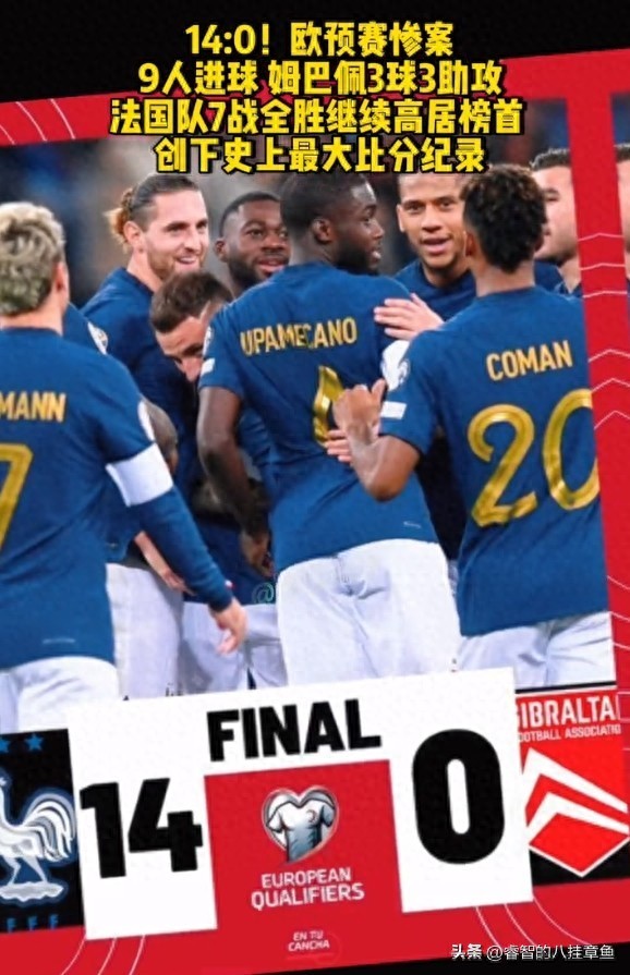“这场比赛简直是足球场上的屠杀!”11月19日,欧洲杯预选赛的一场比赛成为了全球足球迷的热议话题。法国队对阵直布罗陀,以惊人的14-0大胜结束比赛,创下了本届欧洲杯预选赛的最大惨案。
