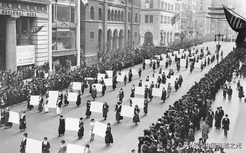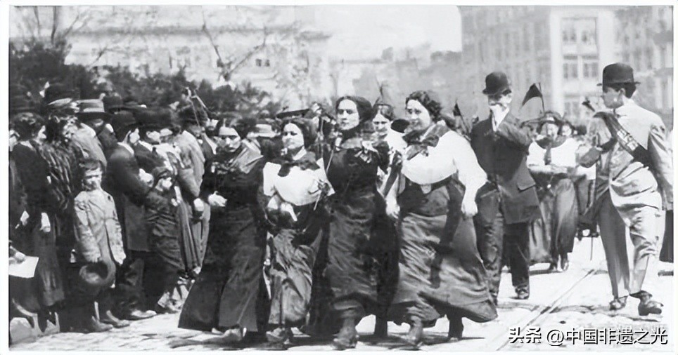 1908年3月8日,1500名妇女在纽约市游行,呼吁女性应争取更好的生活条件。