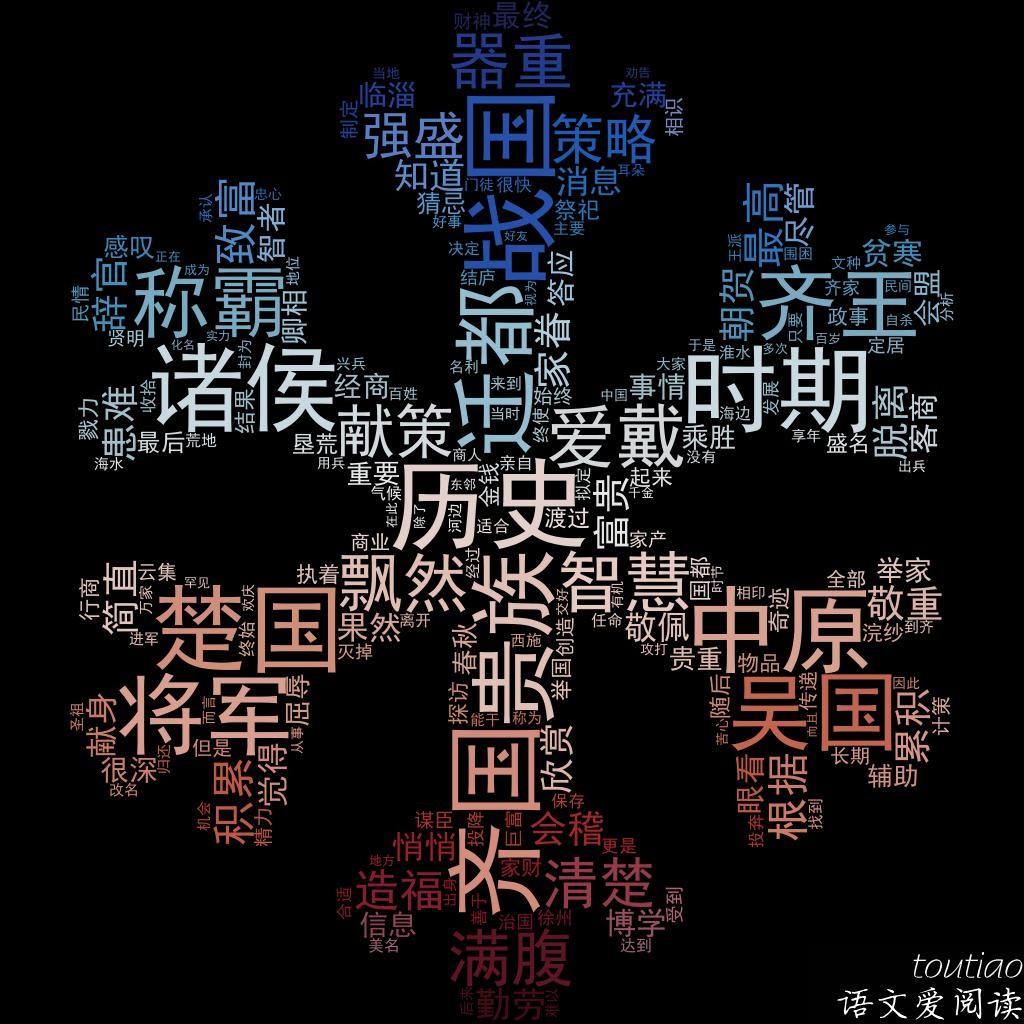 范蠡(fàn lǐ*)既能治国用兵,又能齐家保身,三次功成身退(gōng chéng shēn tuì),始终淡泊名利(dàn bó míng lì*),不执着于财力,是位罕见的智者,被称为(chēng wéi*)中国商人圣祖。大约(dà yuē*)在公元前448年,范蠡(fàn lǐ*)无疾而终(wú jí ér zhōng),享年几近百岁。