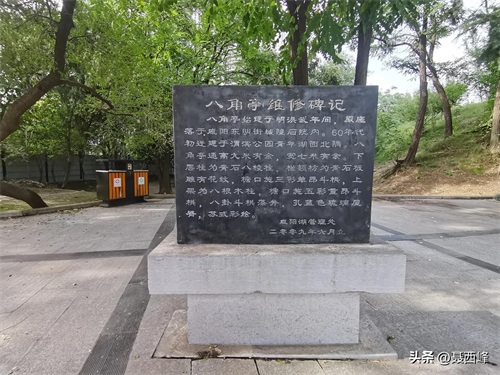 今天的八角亭,依然矗立在青年湖畔,在阳光映射下,在绿萌的氛围中,更加精美坚挺,光彩夺目,是咸阳渭滨公圆内一道美丽独特的风景。