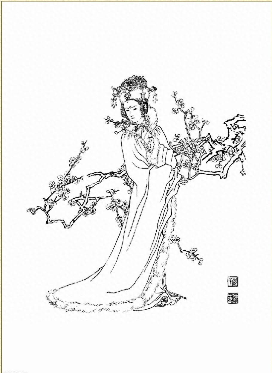 梅妃喜梅,气节若梅。后被杨贵妃贬入冷宫上阳东宫。公元756年(天宝十五年),安禄山发动叛乱(史称安史之乱),唐玄宗落逃没带冷宫中的梅妃,梅妃白绫裹身,投井自尽 。