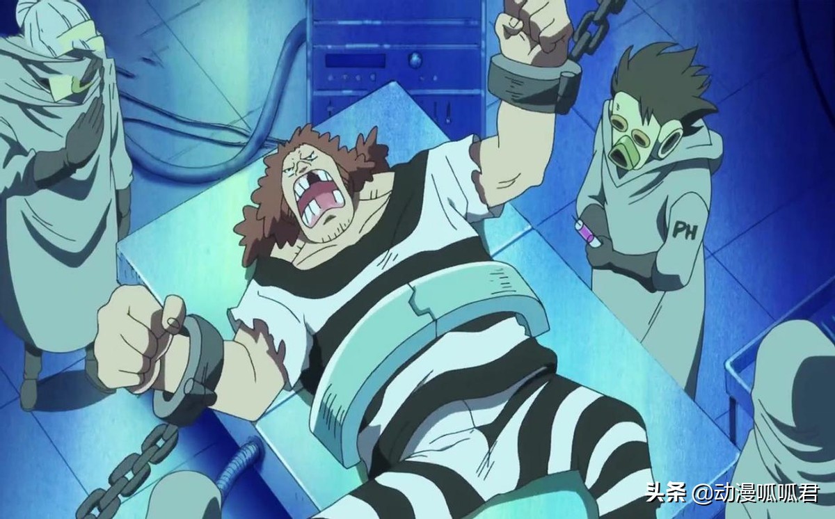 如果贝加庞克试图利用血统因子推进巨人化实验,那么一起来推测一下,百兽海贼团主要战力之一的“蛮霸者”,会不会就是贝加庞克的实验成果。其实也不是空穴来风,仔细想一下,他们在普通巨人的身上,植入了奥兹魔人一族的血统因子,改变身体构造,从而使体形继续增大,头上长出形状各异的双角,并获得了恐怖的怪力。