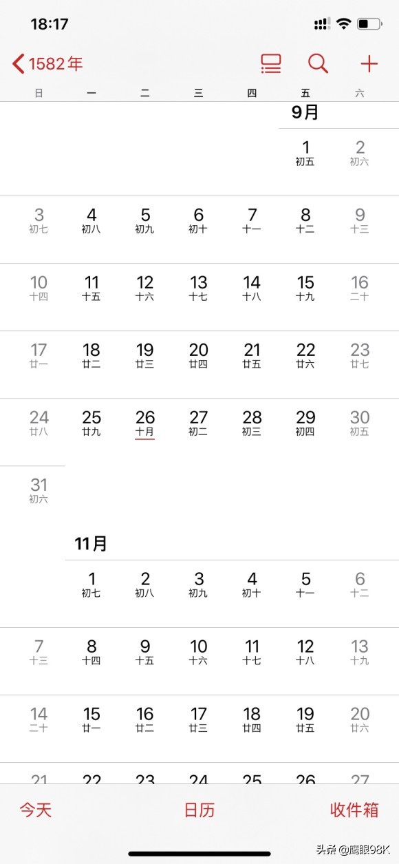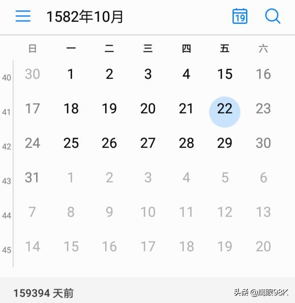 在开始之前,请各位同学打开手机日历,翻到1582年,安卓手机用户会发现1582年10月没有5号-14号