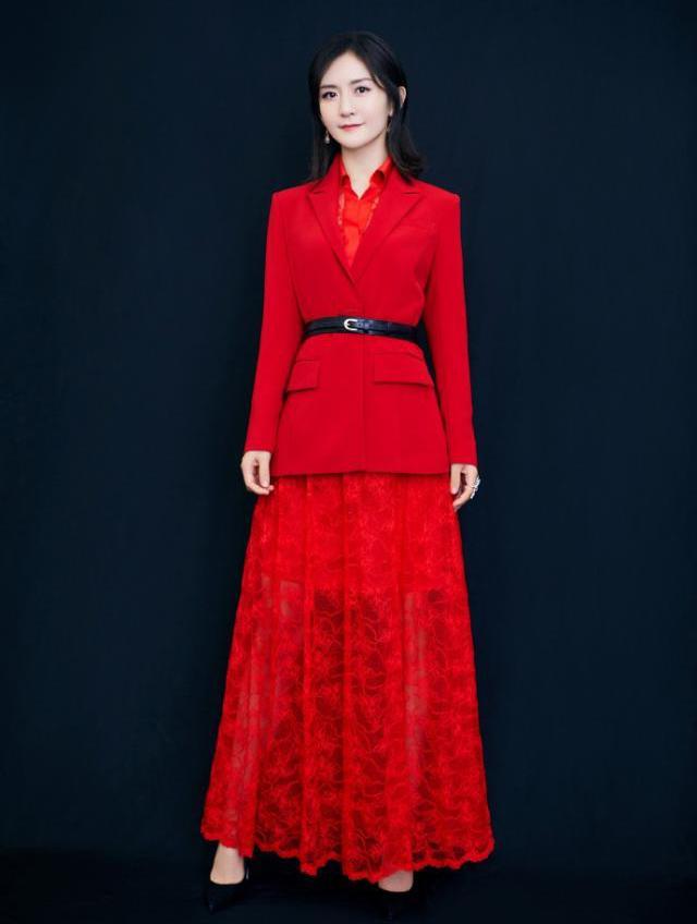 ❤在版型设计上,红色西装是修身设计,这样特别显出她的腰身纤瘦有型。一根黑色腰带不光是起到色彩点缀作用,它也提升了高腰线位置,同时拉长了下身的比例,让人感觉胸以下全是大长腿。肩部是采用垫肩设计,让人感觉她的外形比较端庄正气,显得特别优雅了。