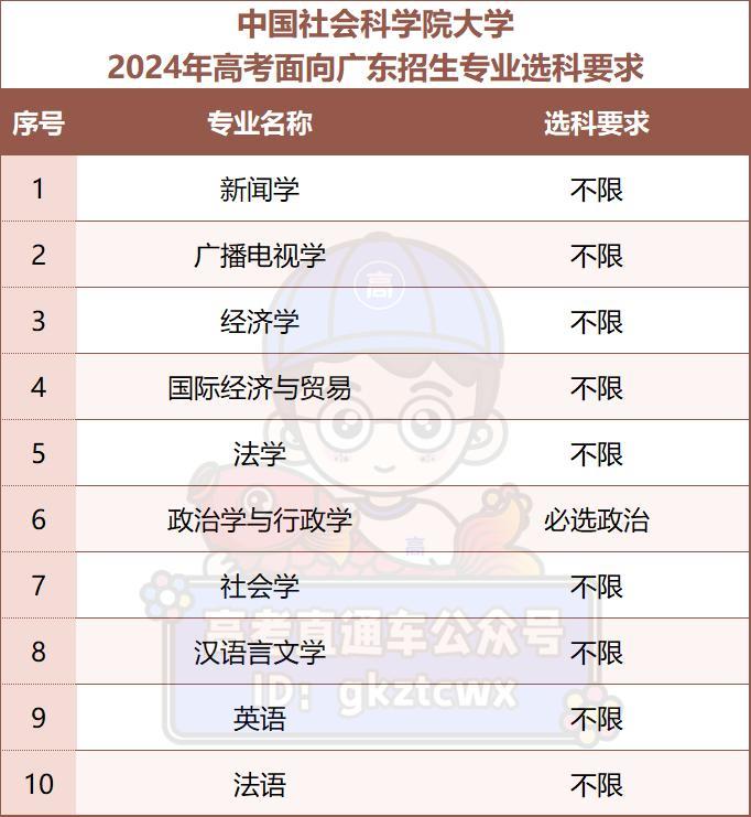 共有10个招生专业,除了政治学与行政学专业的选科要求必选政治以外,其余专业均不限选科,总体来看也是文科专业偏多。