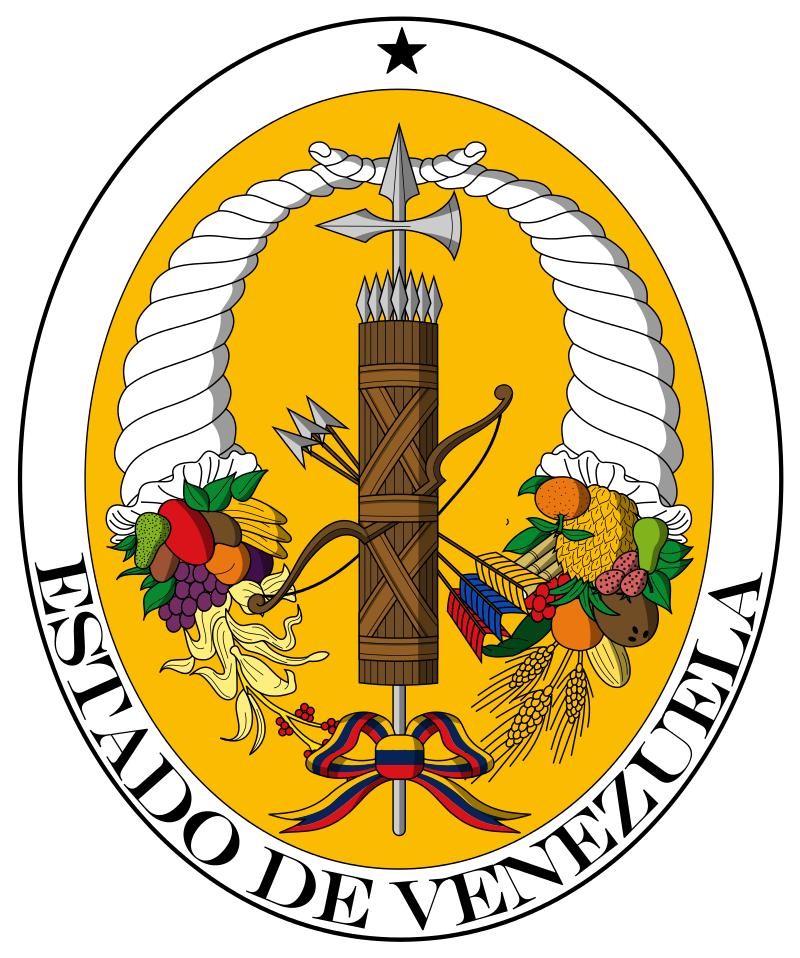国徽中央图案为盾徽,左上角红地,绘有二十株小麦捆在一起,代表二十个州的团结。右上角黄地,绘有剑、佩剑、三枝长矛和两面国旗,以象征胜利的月桂绑起。下方蓝地,绘有一只往左方奔跑的白马(这是前总统乌戈·查韦斯在2006年修改的,但不为反对派承认)。三者加起来是国旗的颜色。盾徽被月桂和棕榈枝条。盾上方有两只丰裕之角,流出蔬菜、水果和鲜花。由国旗三色构成的绶带书有国名和“1810年4月19日、独立”和“1859年2月20日、联邦”。