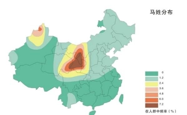 马姓分布。马姓在全国的分布主要集中于河南、河北、山西、江苏四省,约占全国马姓总人口的41.4%。四川、安徽、辽宁、陕西、黑龙江、山东六省的马姓又集中了33.8%。甘肃、新疆、青海、宁夏、广东、福建、浙江等省约占马姓总人口的24%左右。河南常被视为马姓的第一大省。