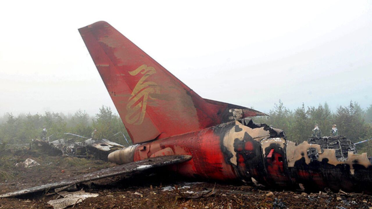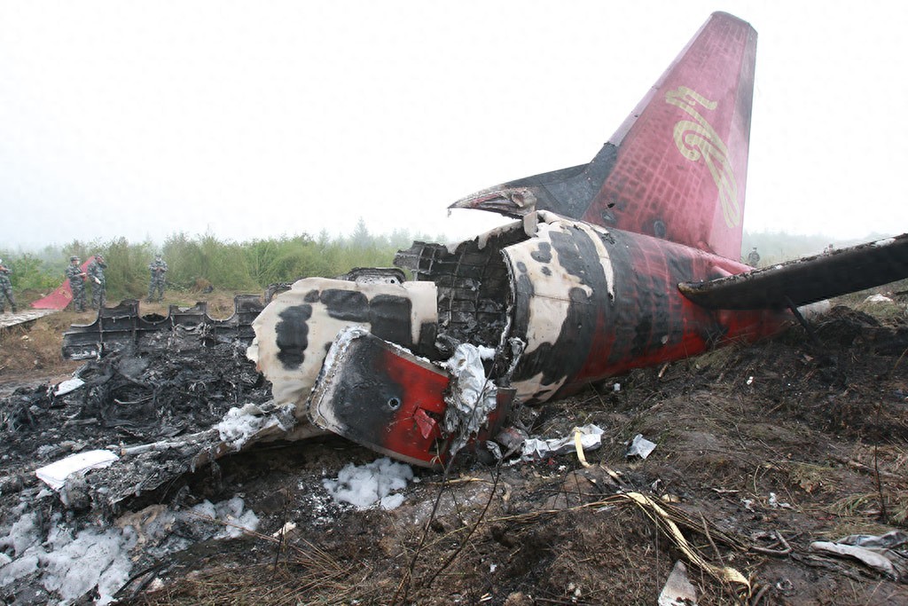 2010年8月24日 黑龙江伊春失事客机机身断裂起火。