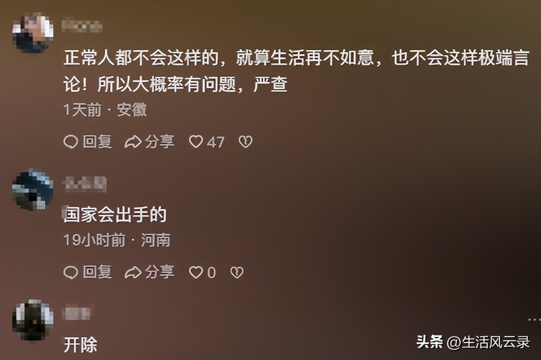 正常人都不会这样的,就算生活在不如意,也不会有这样极端的言论!