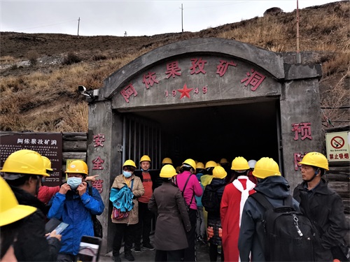坐上区间车,我们沿着三号矿坑上山,中巴车呈“之”形环绕向山腰行进。等到了一个宽阔的平台时,我们就到达了“阿依果孜矿洞”。这个矿洞的名字,是以一个牧民的名字命名的,因为在1949年,是阿依果孜发现了这处矿洞,并以他的名字作为纪念,重要的是见证历史。