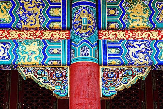 然而宋代和金代的雀替发生了改变,在原有的雀替下面增加了蝉肚的造型,元代蝉肚是最复杂的,从明到清的蝉肚外形越来越简洁,后来又在底下加了一个斗和一个拱。经过慢慢的发展,时代的进步,雀替也发生了很大的改变,其实雀替不光是彩色图案,还有浮雕卷草和龙凤图图案。大多数图案精美细致,并且风格各异,总会找到一种你喜欢的雕刻或者彩绘的图案。