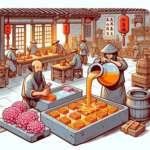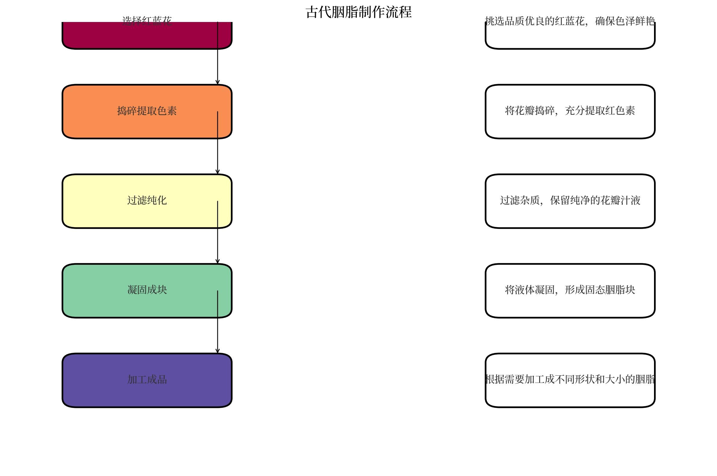 然后将提取的汁液凝固,制成胭脂块。在这一过程中,可能会加入其他天然成分以调整色泽和质感。