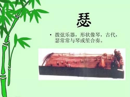 六、瑟,古代弹弦乐器,共有二十五根弦。古瑟形制大体相同,瑟体多用整木斫成,瑟面稍隆起,体中空,体下嵌底板。瑟面首端有一长岳山,尾端有三个短岳山。尾端装有四个系弦的枘。首尾岳山外侧各有相对应的弦孔。另有木质瑟柱,施于弦下。曾侯乙墓共出土瑟十二具,多用榉木或梓木斫成,全长约150至170、宽约40厘米。通体髹漆彩绘,色泽艳丽。