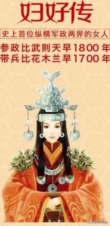 妇好,现有文献和考古证明最早的一名女将军,是中国历史上第一位女将军。“好”是其名(古代读音zi),“妇”是亲属称谓和尊称, 她的庙号称“辛”,又名“后母辛”或“母辛”。在商王武丁的 60 多位妻子中,她是拥有王后地位的三人之一,是武丁的原配,深受武丁信任。