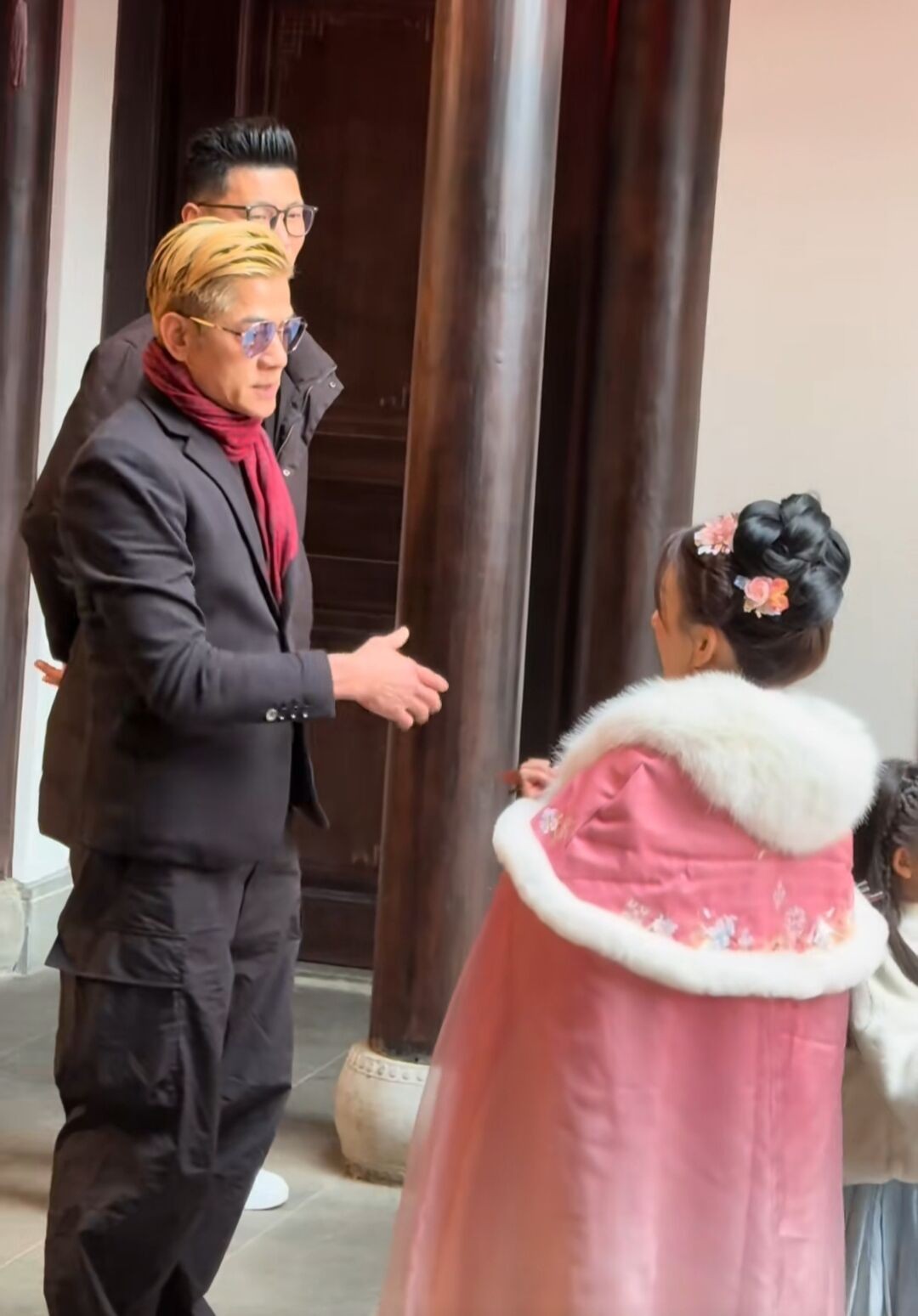 头一天,大家都围着郭富城这位巨星转,可很快郭富城的风头立马被方媛和两个女儿给抢过去了。当方媛脱掉了朴素的羽绒服换上了古装贵妇装后,她的气质立马体现出来了。