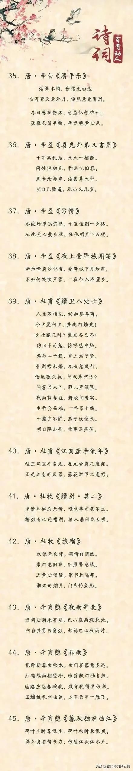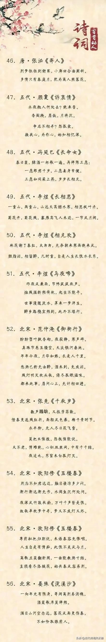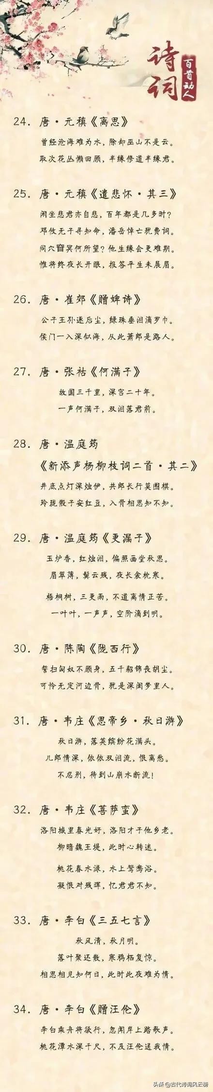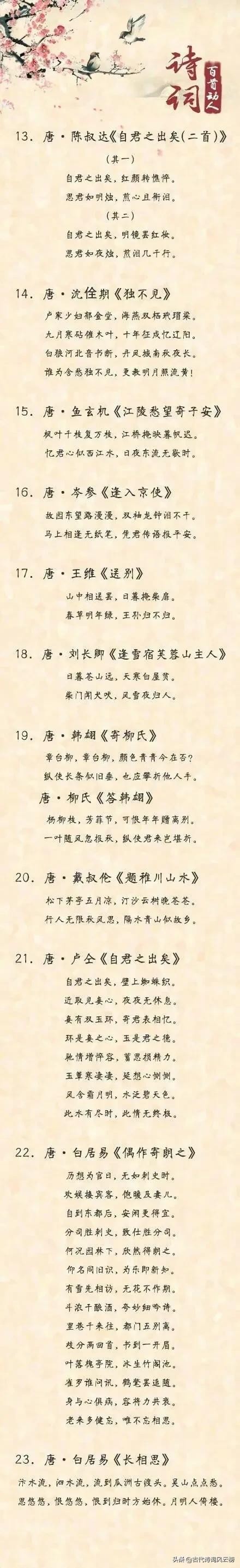 中国古代100首经典古诗词,值得大家一读,赶紧收藏起来吧。