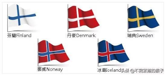我们再来看北欧五国的国旗,也都大相径庭,都有个明显的标志,十字架。