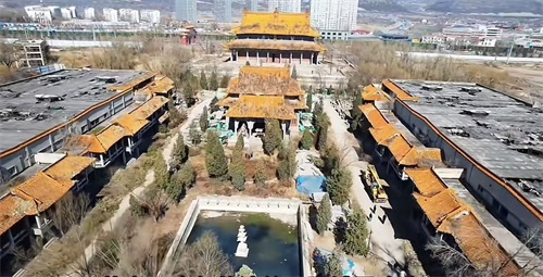 位于太原清徐的三国城,建造于上世纪90年代,耗资6000万元打造的明清仿古建筑群,它的出道比榆次老城、忻州古城、太原古县城都要早,但开放几年后便闭门谢客,虽地处繁华县却杂草丛生,如今连地面、歇山屋顶都长满了蒿草,破败凋敝景致引来人们哀叹惋惜。而周围许多土地则是高楼林立,充满了浓浓人间烟火气,红墙内外景致迥然不同。