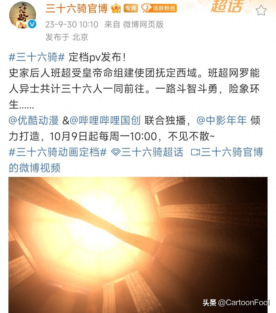《三十六骑》动画定档10月9日,共13集,班超&汉明帝即将上线,大家有没有期待起来呢?欢迎在下方留言和评论哦