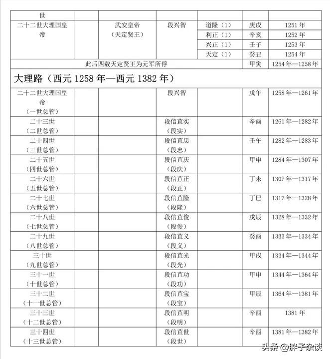 前大理国有14位皇帝,后大理国8位皇帝,世袭大理总管13位。