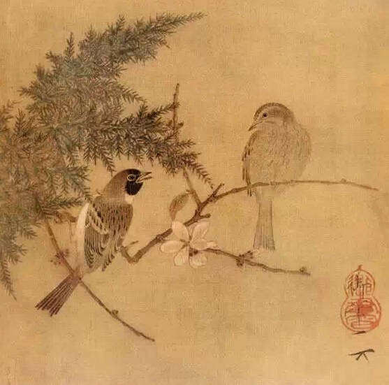 《腊梅双禽图页》