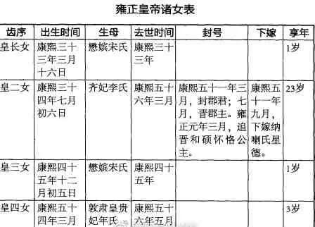 雍正的14位子女,一起算的话,有9位未成年就夭折。有确切年龄记载的13位子女,平均寿命是20.5岁。如果不算长寿的乾隆,雍正12位子女的平均寿命是14.5岁。