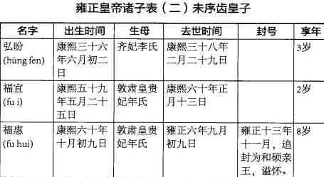 清朝雍正皇帝儿女列表大全