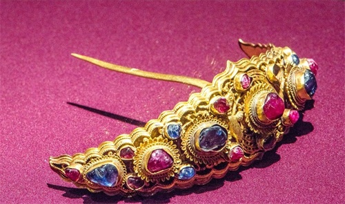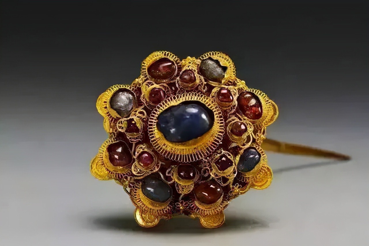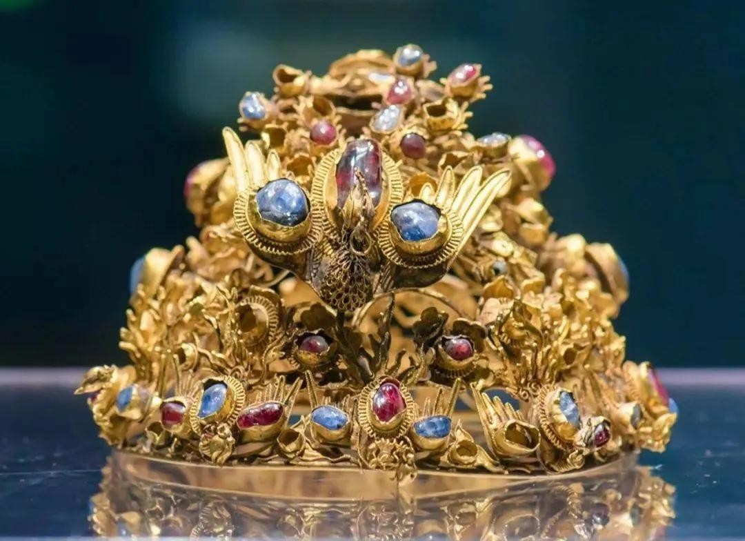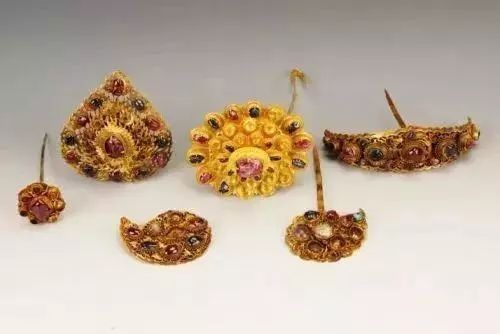 嵌宝石金头面一套,南京将军山明沐斌夫人梅氏墓出土。
