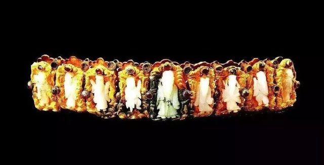 同时出土的还有一件金镶宝玉群仙庆寿钿。
