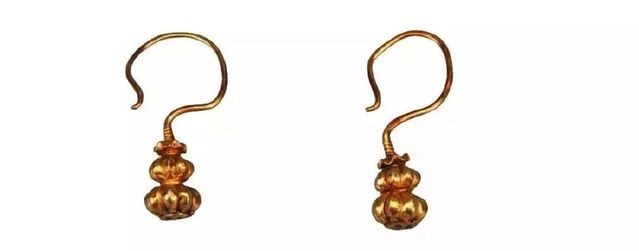 葫芦形金耳环,江西省德安县虹桥公社余氏墓出土。