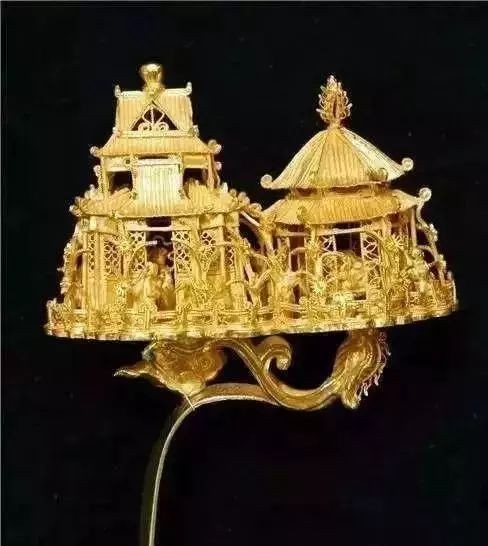 金累丝楼台人物顶簪,江西南城明益庄王妃万氏墓出土。