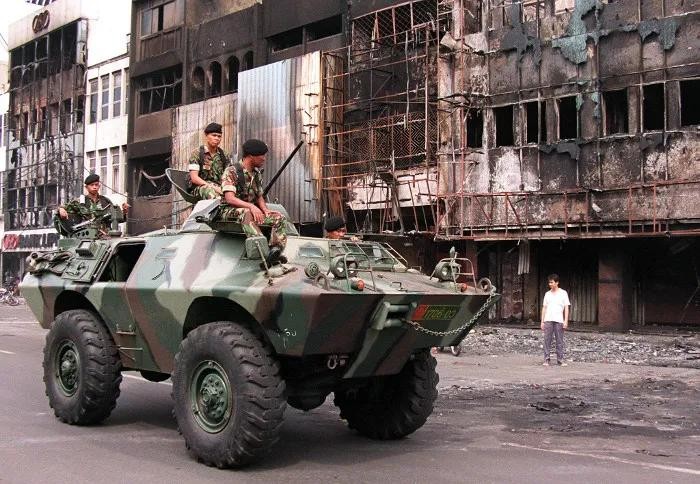 印尼华人是这场血腥暴乱的主要目标,而印尼军方无视暴民们对华人的抢劫和对华人妇女的强奸。导致超过1,000人死于这场暴乱中,大部分华人被烧死在商业区和商场,也有一部分被当场打死或遭到枪杀。暴徒穿着军靴被军用卡车运送到华人区,他们高呼“宰了中国人,烧死他们,这些中国狗”,然后开始抢劫商店和市场,随后,他们开始把妇女集中起来进行集体轮奸,印尼警察到场之后,并没有阻止暴徒的行动。华裔妇女和10岁的女孩在中国社区被有组织的抢劫者强奸。一些受害者在父母面前被轮奸,然后纵火死亡。一些袭击者说,‘你一定是红色的,因为你是中国人,不是穆斯林。’一位妇女告诉《纽约时报》,并补充说许多妇女事后自杀。1998年5月,在两天的种族混乱中,暴徒杀害了1000人,强奸了87名妇女,其中大多数是华裔。据报道,由军队暴徒领导的强奸小组在印度尼西亚首都雅加达的街道上游荡,其他人蜷缩在家中。鲁米纳回忆起那天下午,一群暴徒洗劫了她的小美发沙龙,砸碎了窗户,摧毁了她的生意和她对祖国正义的信心。娇小的鲁米纳只有一个名字,那天失去的比她的商店还多。她的发育障碍儿子在附近一家购物中心被抢劫者放火身亡。大卫·利霍德在《时代》杂志上写道:“麻烦始于一个谣言......有消息说,一名马来人在一次轻微的交通事故中被一名华裔杀害。”几个小时内,武装人员的暴徒在街道上横冲直撞,放火烧了大部分中国人拥有的房屋和商店,到日出时...... 400多座建筑被损坏或摧毁,中国人逃往邻近的城镇。20多名愤怒的年轻人开始向商店里扔石头。他们挥舞着刀子、镰刀和铁棒,冲进里面,打翻了大米、糖、大豆和食用油的展示。他们抢了现金抽屉,偷了两吨大米,放火......大喊“杀了中国人”。店主在街上被愤怒的暴徒追着,在一家非华裔印尼朋友开的商店里找到了安全。