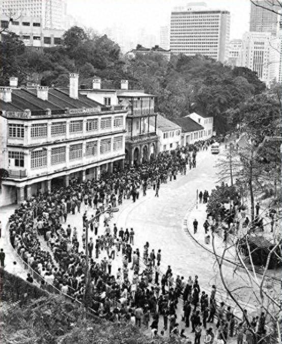 1980年,这是一群从内地逃到香港的人,在排队领香...