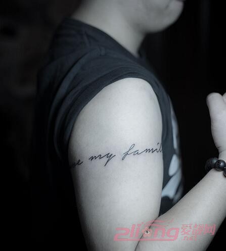 如流水的文字轻轻围绕手臂一圈,简单的文字令人有赏心悦目之感,既低调又舒适,适合性格低调的男士们,可以选择含有独特意思的文字。