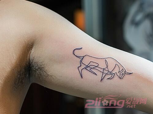 简单的几个线条就勾勒出一只强而有力的公牛,生气勃勃又栩栩如生,像要从手臂中呼之欲出,无意间添加了男士阳光气味。
