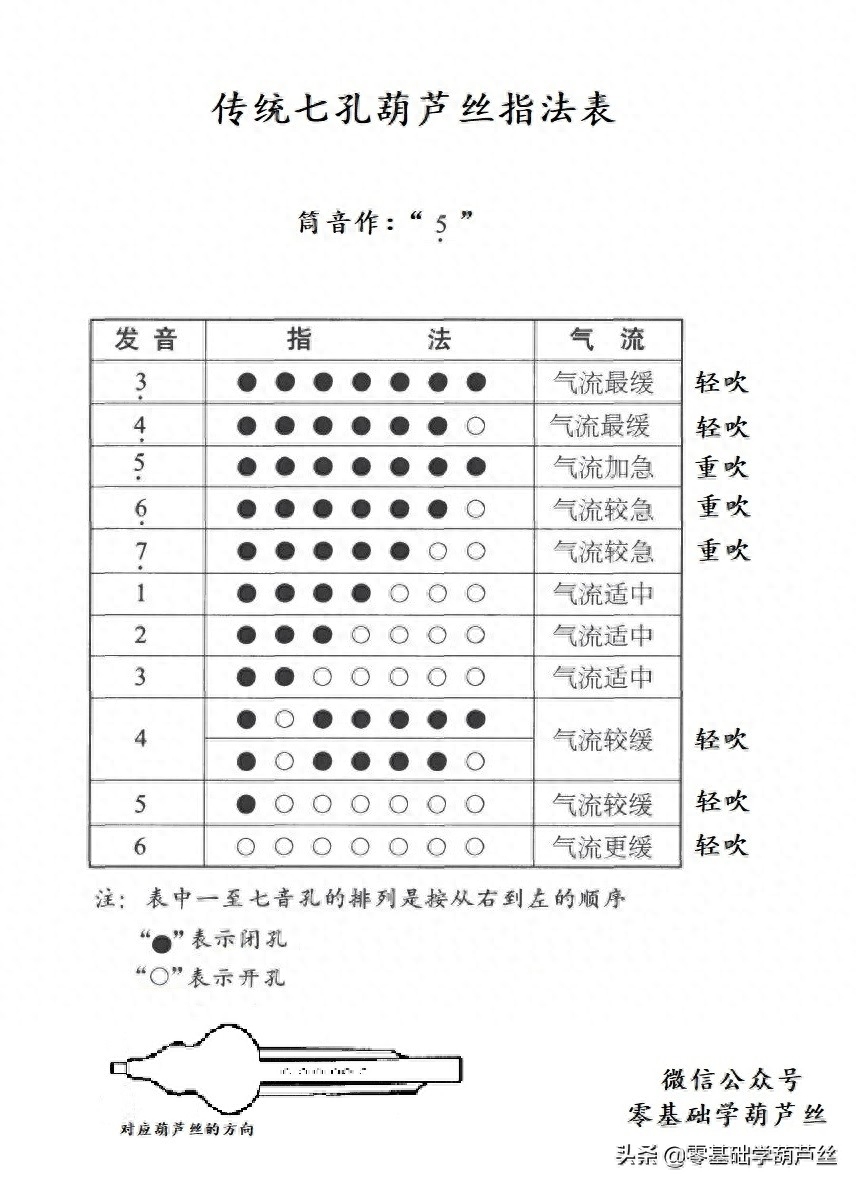 图三(传统七孔葫芦丝指法对照表)筒音作中音‘1’