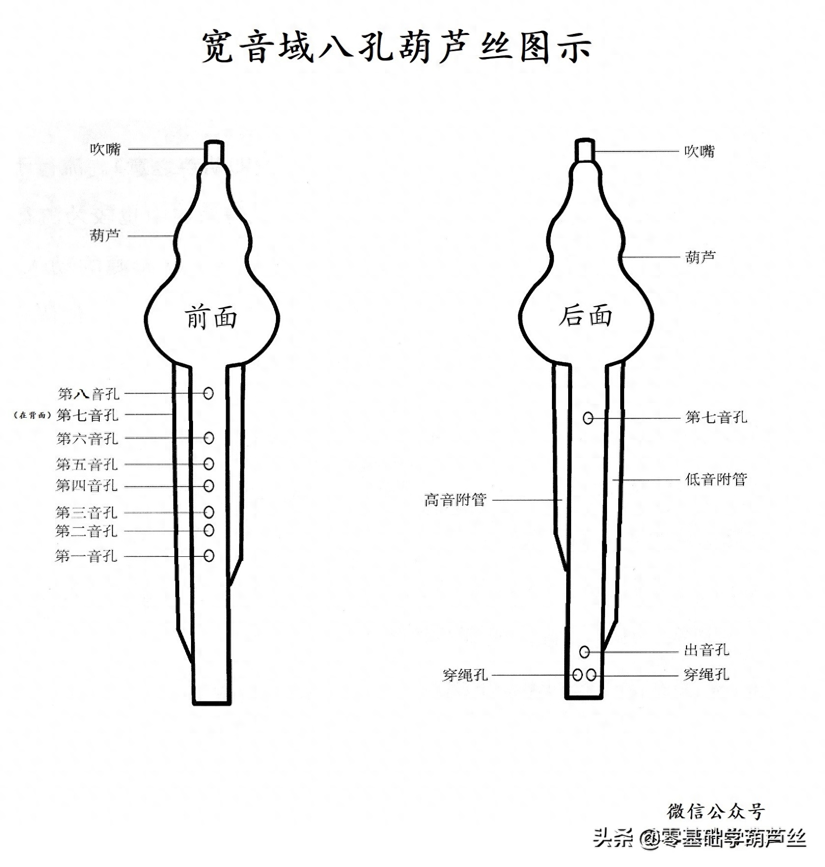 为了让同学们更直观地了解葫芦丝的指法,我自己也在网上搜索了好多图片都不太理想。好不容易找到几张图片,可是又感觉哪里有点不太对劲。自己又坐在电脑前,研究了几个小时,想来想去该如何图解,更改了好多次,累得腰酸背痛,头昏眼花,总算弄好了。在原来的图片基础上增加低音4的吹法,和中音4的两种吹法,希望能给朋友们带来帮助。虽然自己辛苦点,但是如果能帮助同学们更好地学习葫芦丝,再累也值了。在此整理了六张图片放在这篇文章里,用图片对比七孔和八孔的区别,图解筒音作低音‘5’和筒音作中音‘1’的指法,分享给零基础业余爱好葫芦丝的朋友们参考学习。