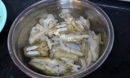 1,蛏子用淡盐水浸泡半个小时,洗干净。